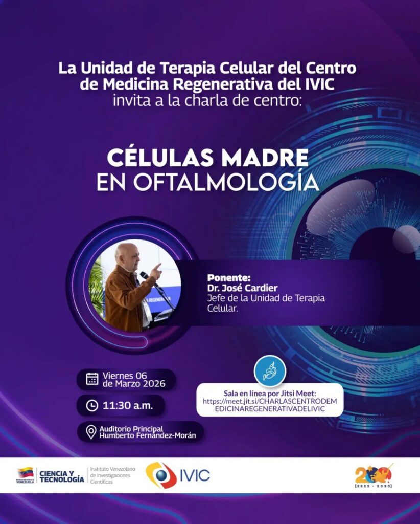 (Caracas, 5 de marzo de 2026).- El Instituto Venezolano de Investigaciones Científicas (IVIC) invita a la comunidad académica y al público general a la conferencia Células Madre en Oftalmología, el viernes 06 de marzo, a las 11:30 A.M.